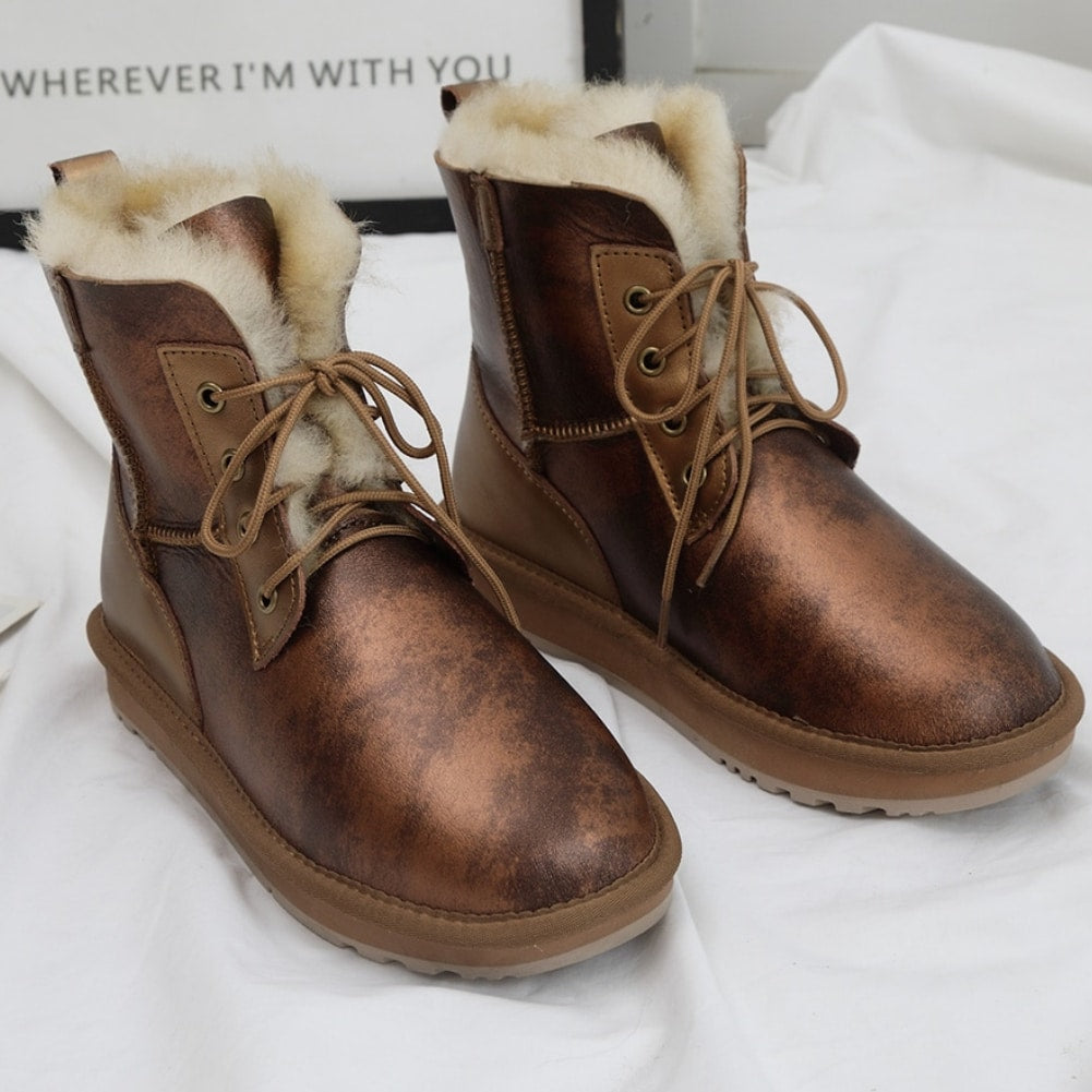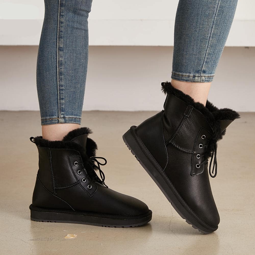 Die klassieke styl van ons warm en waterdig leerboots sal die dames wat daarvan hou om 'n sjiek en elegante voorkoms te hê, selfs wanneer hulle die sneeu en koue trotseer, tevrede stel. Die boots is gemaak van sagte leer, wat hulle baie gemaklik maak om die hele dag te dra. Die binnesool is verwyderbaar en is gemaak van asemhalende materiale sodat jou voete nie sweet nie.