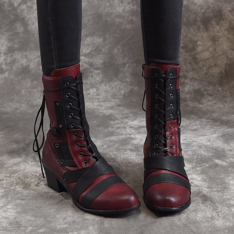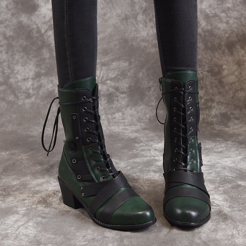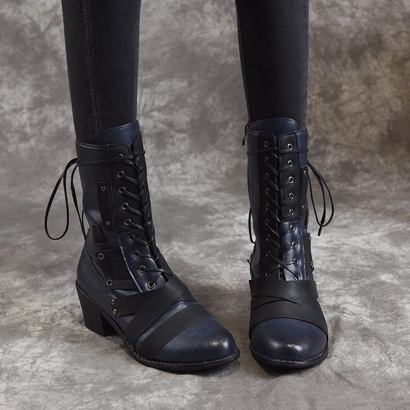 Des petits talons carrés pour vous sur-élevé légèrement et élancer votre silhouette. Ces bottines se ferment avec un zip sur le côté et s'ajustent avec des lacets, assez long pour pouvoir les nouer à la cheville.