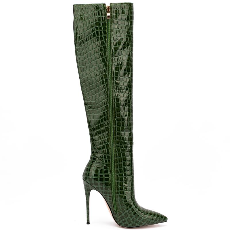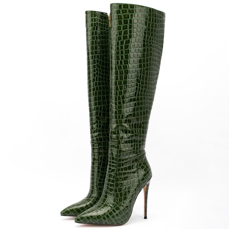 Wenn du Lackstiefel liebst, sind diese Stiefel mit Krokodilmuster genau das Richtige für dich! Sie sind super schick und elegant, und ihr einzigartiges, stylisches Design lässt dich garantiert aus der Masse hervorstechen. Lackstiefel sind ein Must-have für jede moderne Fashionista, und mit diesem coolen Krokodilmuster liegst du voll im Trend. Diese Stiefel sind perfekt für jeden Anlass, egal ob für einen schicken Abend oder einen lässigen Look.