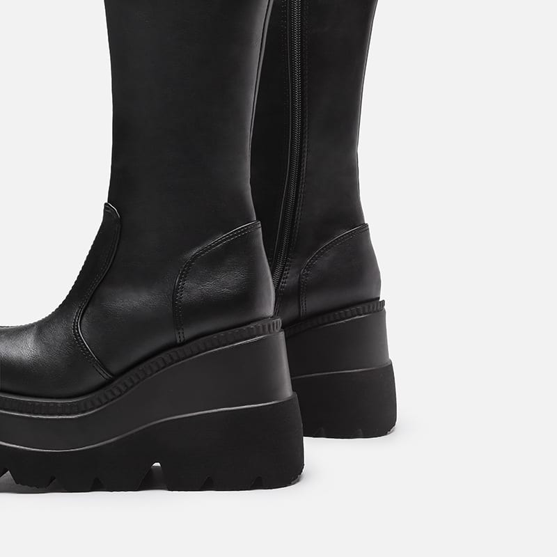 Botte haute noire à plateforme de profil
