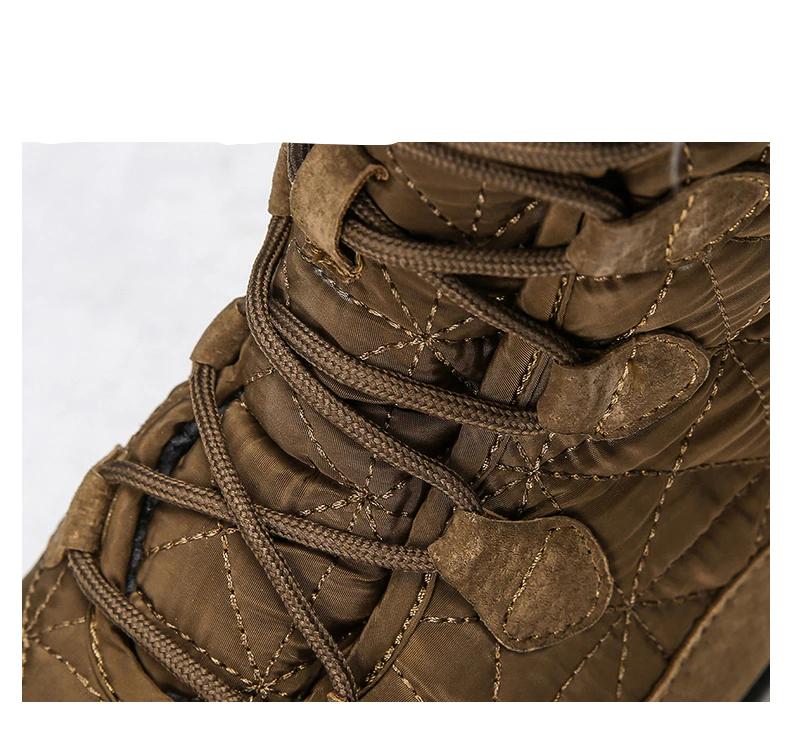Paire de bottes kaki fourrées sur de la neige