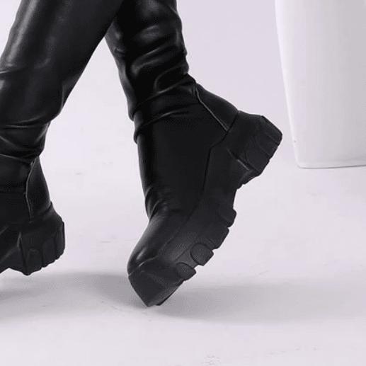These black leather sock boots are both stylish and functional. Their unique design makes them easy to slip on and off, while their leather insole ensures optimal comfort. Their clean look is perfect for chilly days or to complete your evening outfit.
