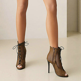 Botas-sandalias marrones de tacón alto fino para mujeres