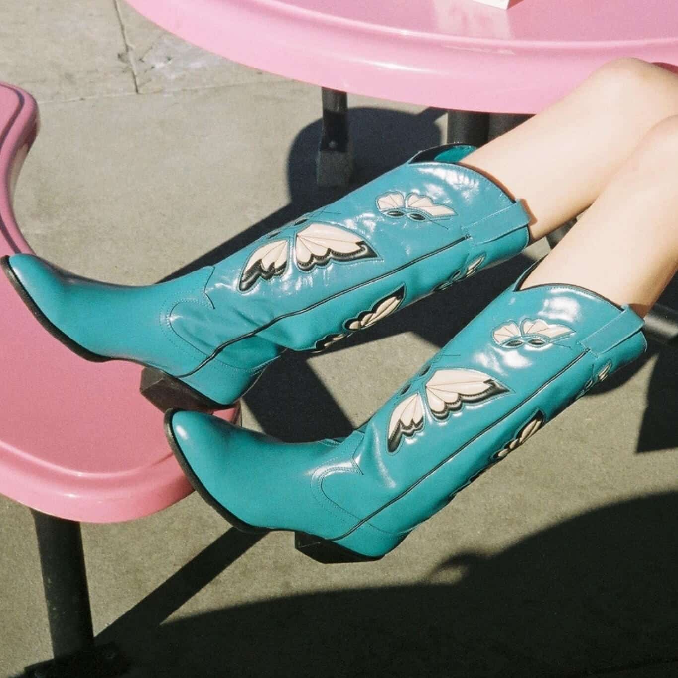Cowboy-støvler for kvinner med sommerfuglmønster