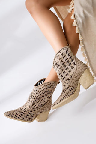 Lave sommer camel støvler i mesh med lave hæler